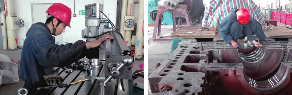 汽封制造加工完成后,現場專用設備調整間隙。
